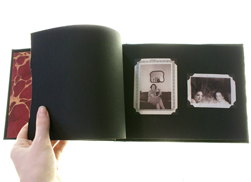Remember Me Like This is an artist's book that I created in response to this experience. The book explores the way in which we subconsciously alter or fabricate our memories based on photographs. The book was constructed to look and feel like an authentic heirloom. The montages were created by superimposing myself into my grandmother's original photographs using Adobe Photoshop.